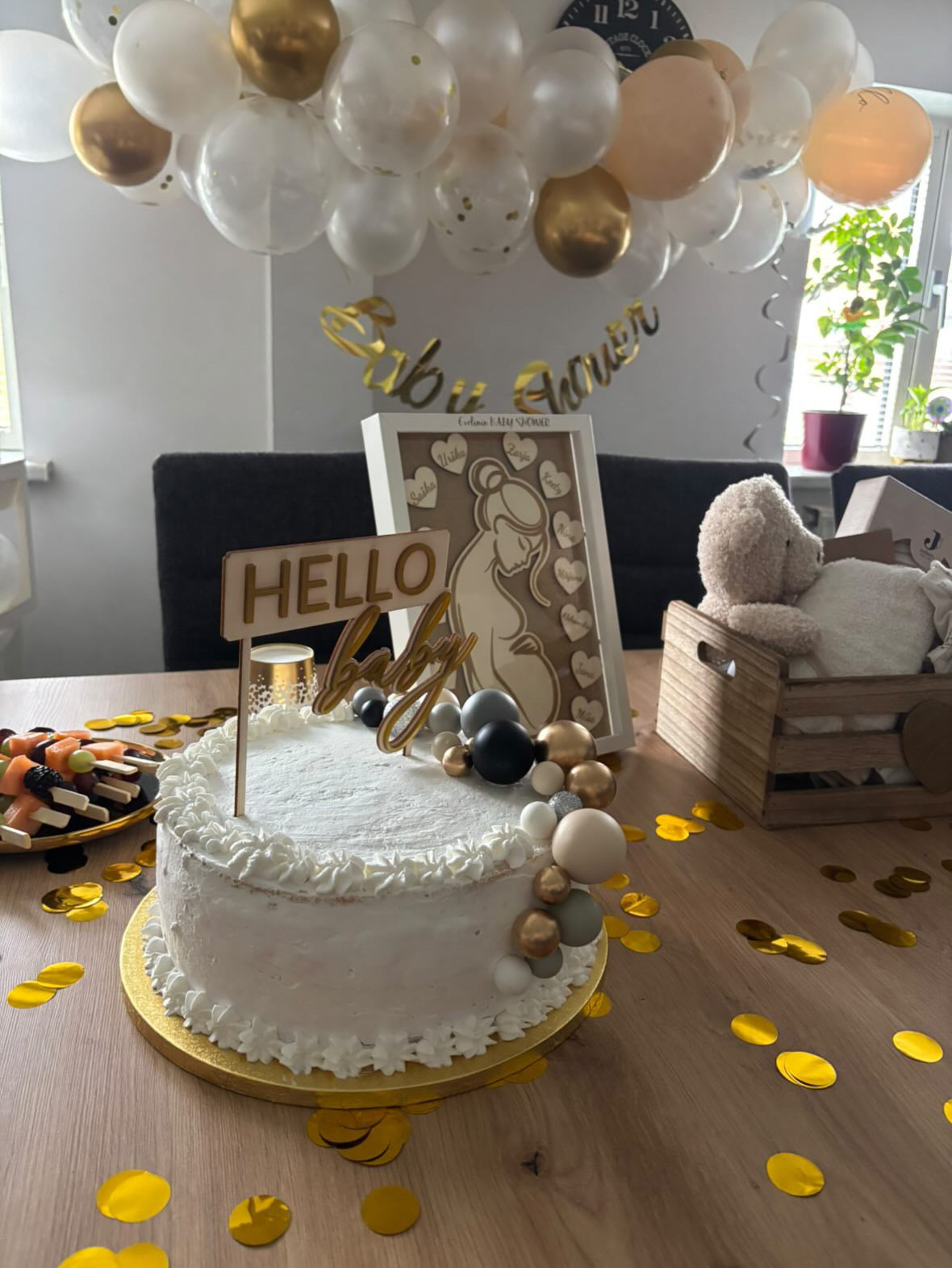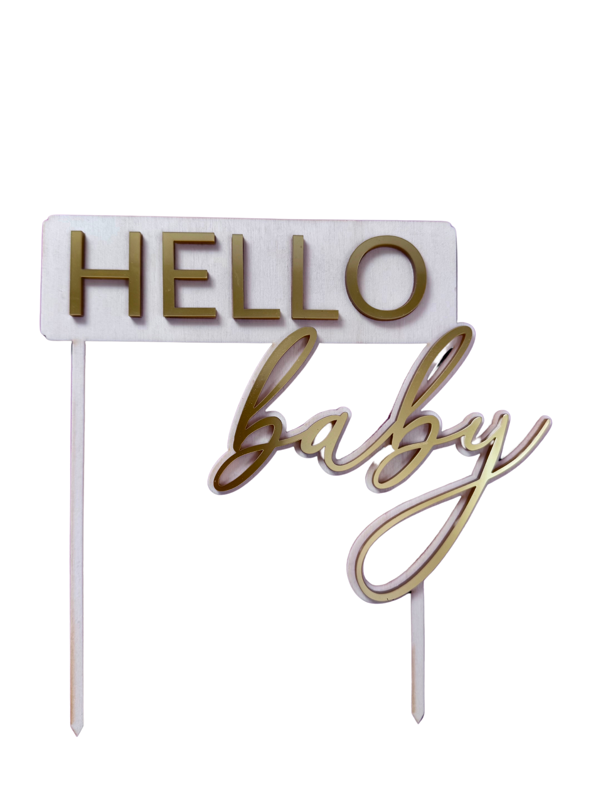Cake Topper “Hello Baby” – Les in Zlati Akril za Baby Shower