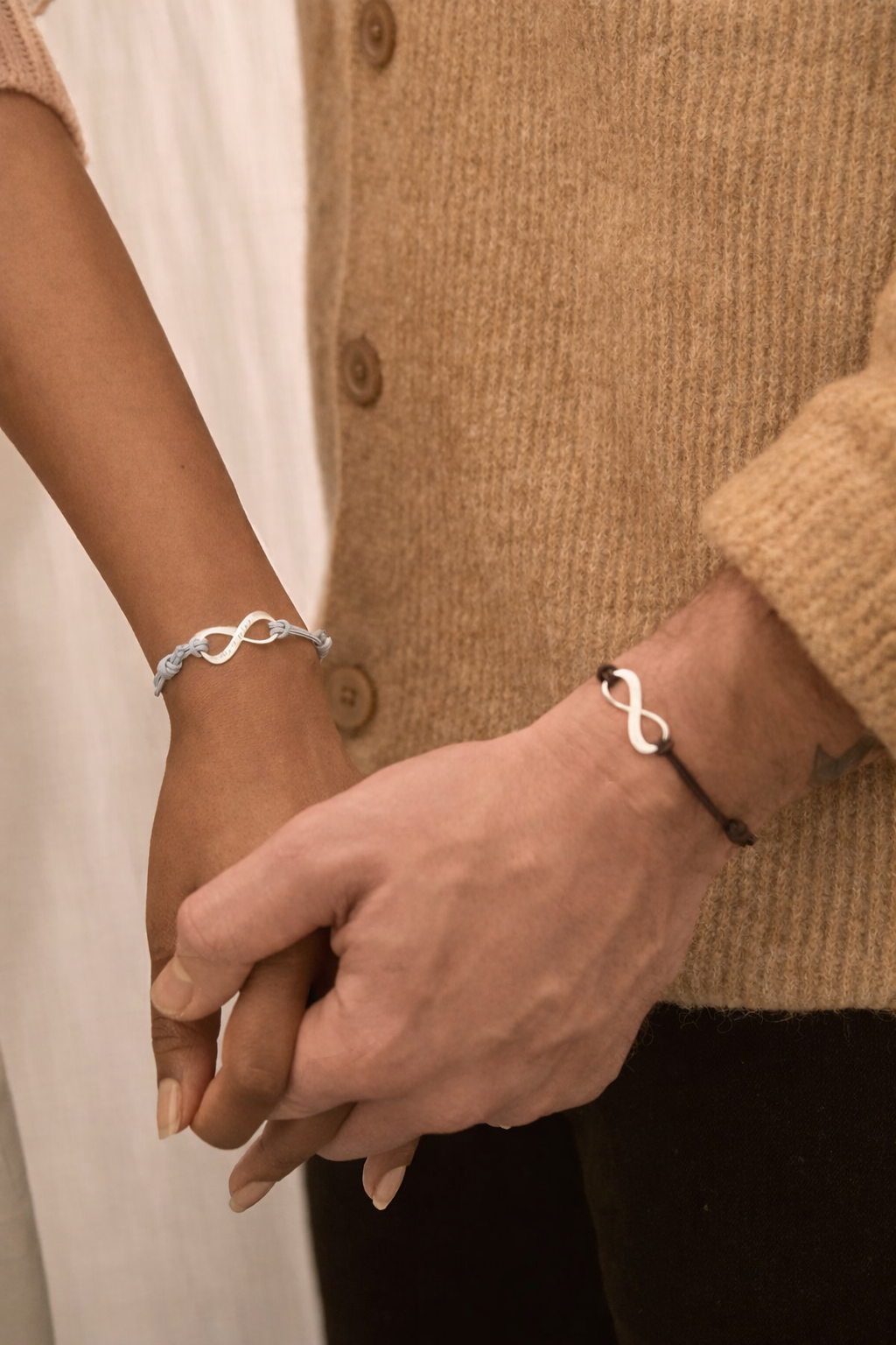 Elegantna in brezčasna zapestnica z "infinity" simbolom, ki predstavlja večno povezanost, ljubezen in bližino. Kovinski element je lasersko graviran z imeni po vaši izbiri ter dopolnjen z nežnim simbolom srčka.