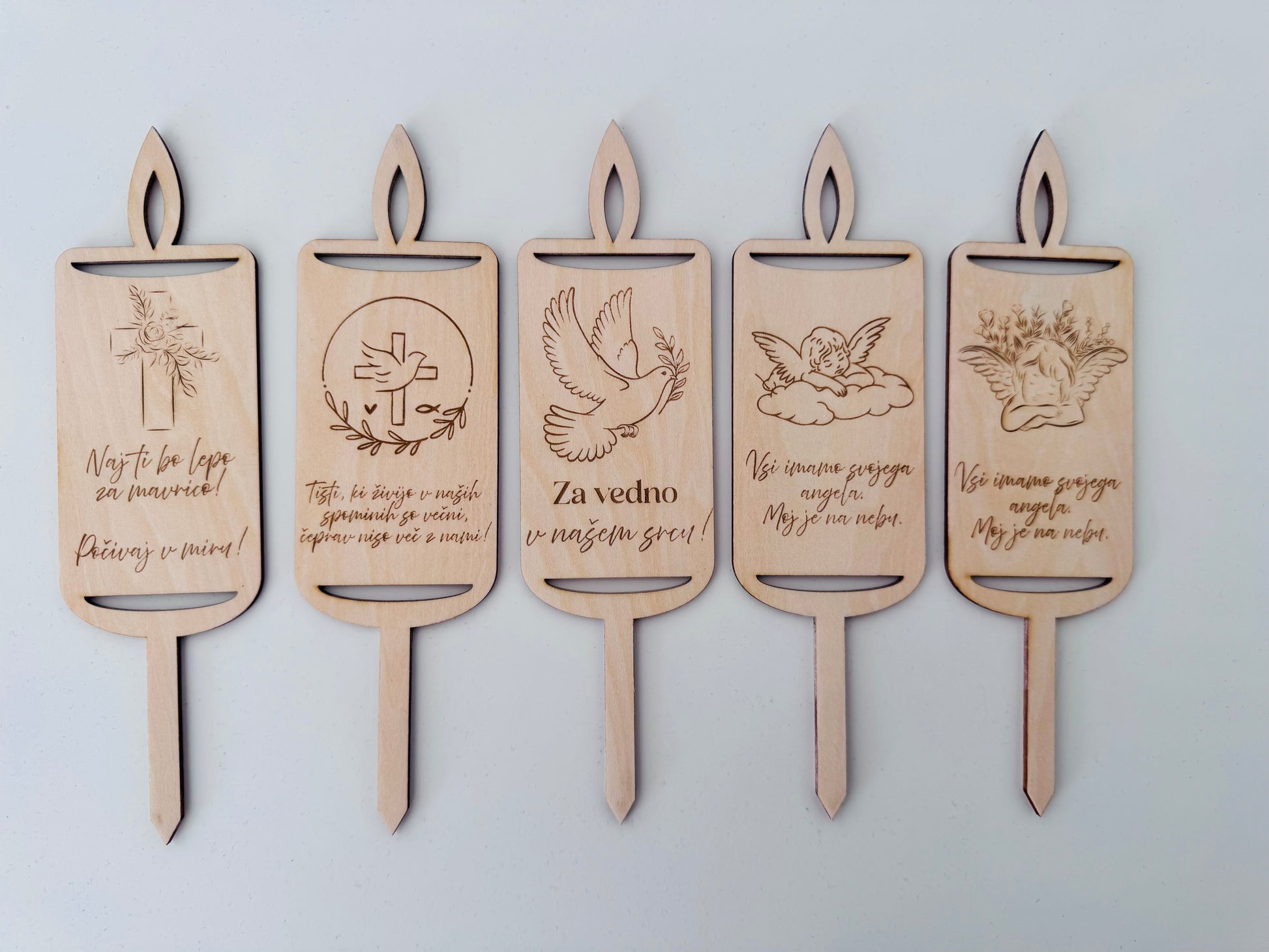 - Različni motivi in napisi (križ, golob, angel, cvetje …)