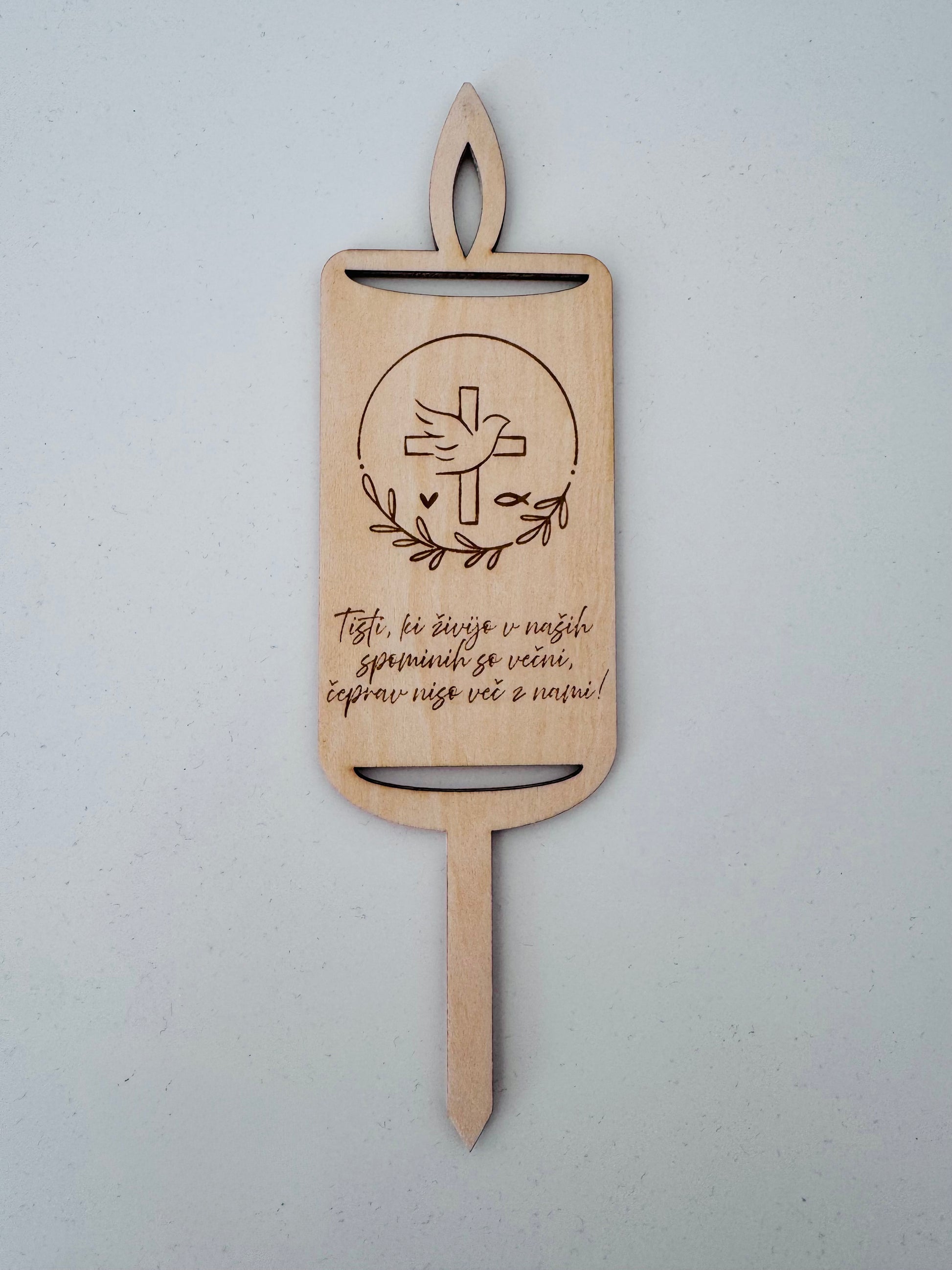 Elegantne lesene sveče so poseben spominski okras, ki izraža toplino, ljubezen in spoštovanje do naših dragih. Vsaka sveča je izdelana iz kakovostnega lesa in oplemenitena z nežno gravuro različnih motivov in napisov.