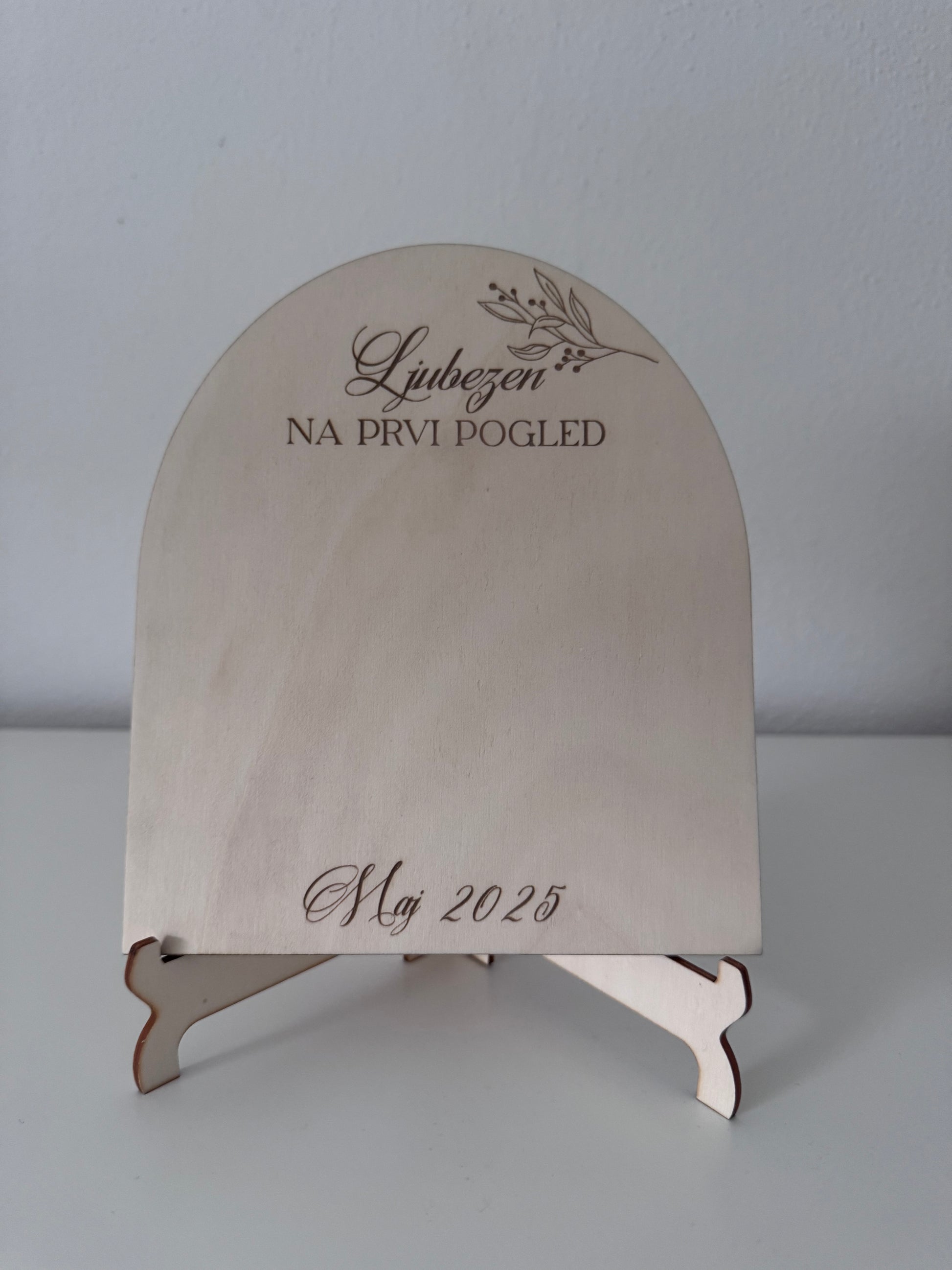 Praznujte čaroben trenutek pričakovanja z elegantno oznanitveno tablico “Ljubezen na prvi pogled”. Tablica je popoln način, da svetu razkrijete veselo novico o prihodu novega člana družine.