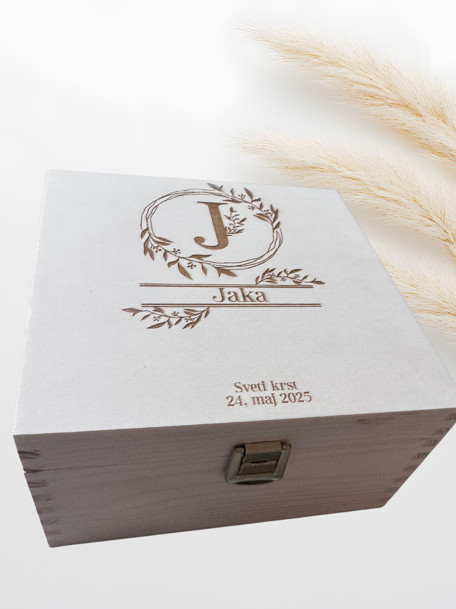 Na pokrov škatle je gravirano ime otroka ter datum krsta, kar ji daje posebno osebno noto. Škatla je idealna za shranjevanje spominskih predmetov, kot so krstna sveča, čipka, verižica, fotografije ali druge dragocene malenkosti, ki bodo vedno znova obudile spomin na ta poseben dan. Izdelana iz kakovostnega lesa v Sloveniji in natančno obdelana, je ta škatla popolno darilo ob svetem krstu – tako za starše kot za botre, stare starše ali družinske prijatelje.